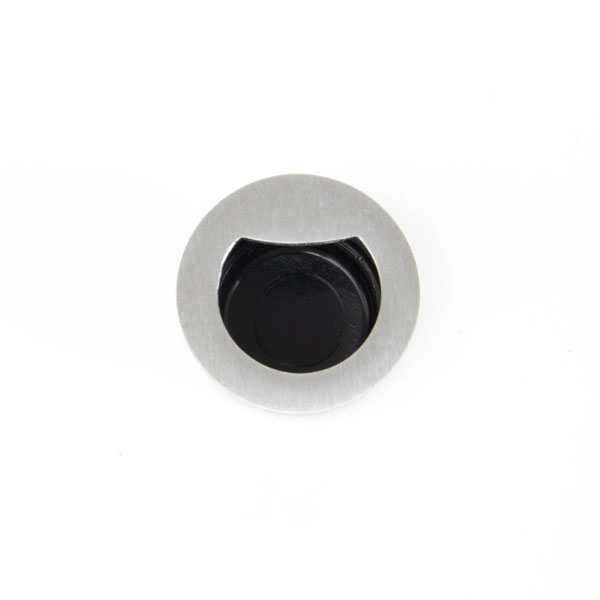 30mm Diameter round flush pull handle. Perfect for cabinets, sliding doors, and pocket doors. Supplied with fixings.