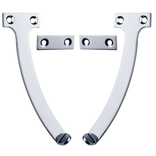 Polished Chrome with two striker plates.A simple but effective way to keep open a hopper fanlight window. All screws provided.